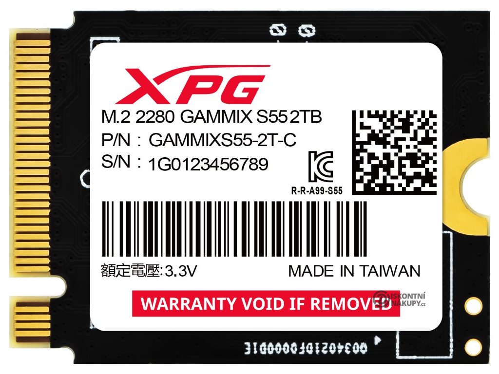 ADATA XPG GAMMIX S55 2 TBInterní SSD disk formátu M.2 nabízí kapacitu 2 TB. Propojení je realizováno skrze PCIe Gen4 x4 a přenosové rychlosti činí až 3200 MB/s při zápisu a až 5000 MB/s při čtení. Hlavní předností je snadná instalace do zařízení, která nabízejí velmi omezený prostor, jako jsou mini notebooky, přenosné herní konzole či tablety.