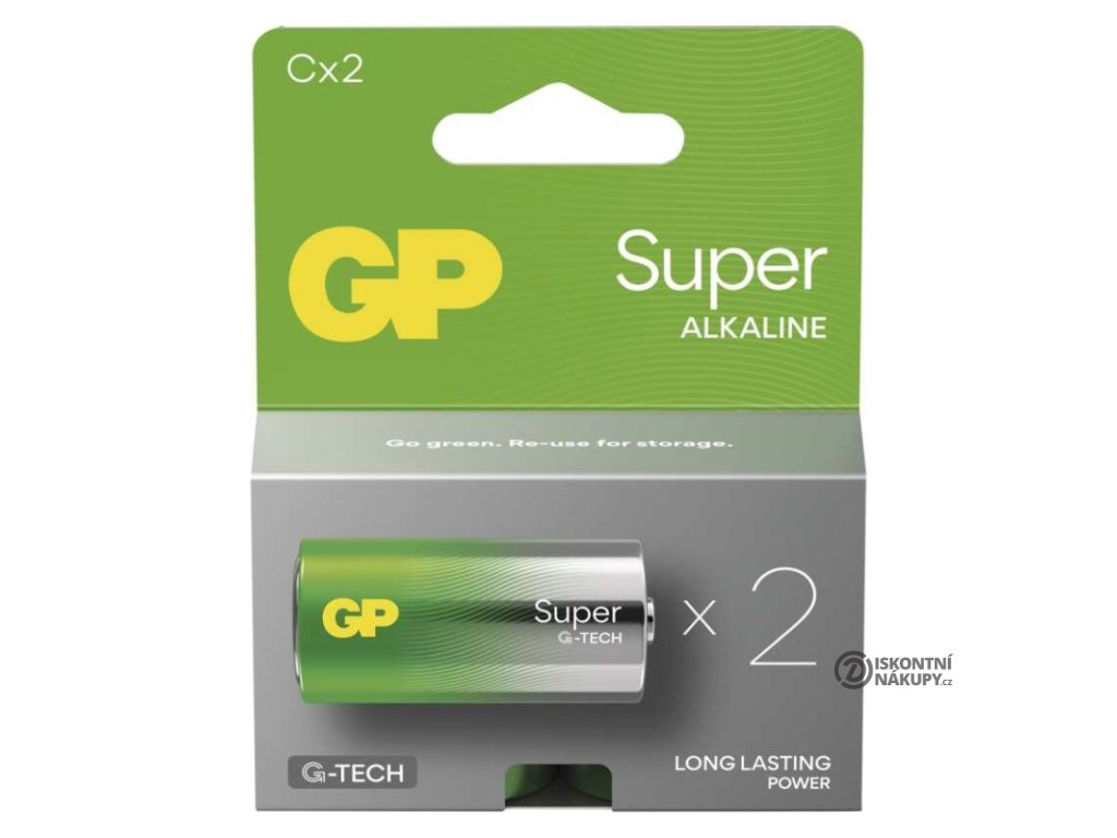 chemické složení: alkalické|hmotnost: 68 g|kapacita: neuvádí se|kategorie/řada: Super Alkaline|max. skladovatelnost: 10 let|možnost nabíjení: ne|napětí: 1,5 V|počet nabíjecích cyklů: nenabíjecí|prodejní obal: 2 ks, papírová krabička|provozní teplota: -18 °C až +50 °C|rozměr: 26,2 × 50,0 mm|typ: LR14 (malé mono, C)|velikost baterie: C|značka: GPDoplňkové parametry