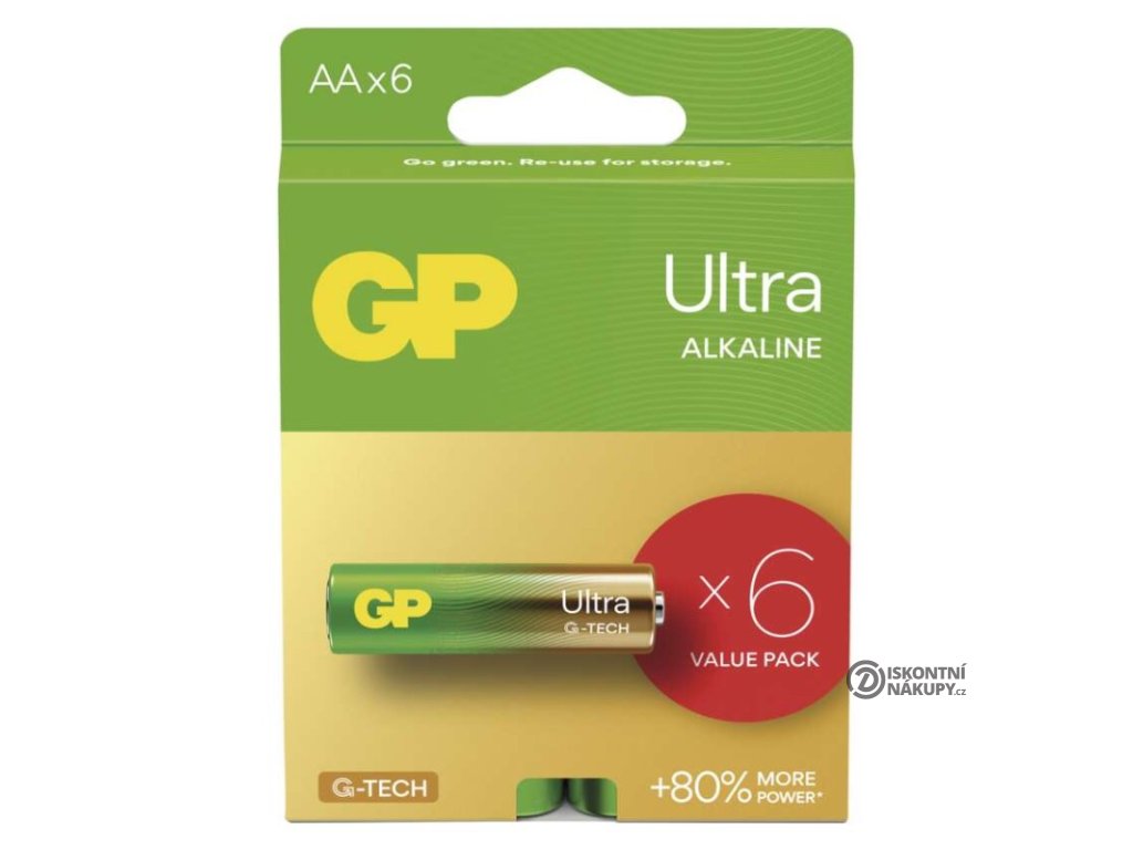 chemické složení: alkalické|hmotnost: 23 g|kapacita: neuvádí se|kategorie/řada: Ultra Alkaline|max. skladovatelnost: 10 let|možnost nabíjení: ne|napětí: 1,5 V|počet nabíjecích cyklů: nenabíjecí|prodejní obal: 6 ks, papírová krabička|provozní teplota: -18 °C až +50 °C|rozměr: 14,5 × 50,5 mm|typ: LR6 (tužka, AA)|velikost baterie: AA|značka: GPDoplňkové parametry