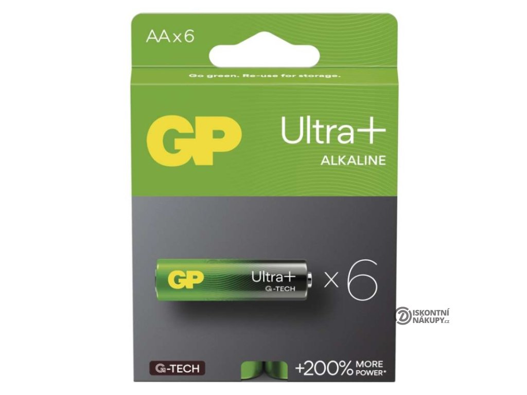 chemické složení: alkalické|hmotnost: 23 g|kapacita: neuvádí se|kategorie/řada: Ultra Plus Alkaline|max. skladovatelnost: 10 let|možnost nabíjení: ne|napětí: 1,5 V|počet nabíjecích cyklů: nenabíjecí|prodejní obal: 6 ks, papírová krabička|provozní teplota: -20 °C až +54 °C|rozměr: 14,5 × 50,5 mm|typ: LR6 (tužka, AA)|velikost baterie: AA|značka: GPDoplňkové parametry