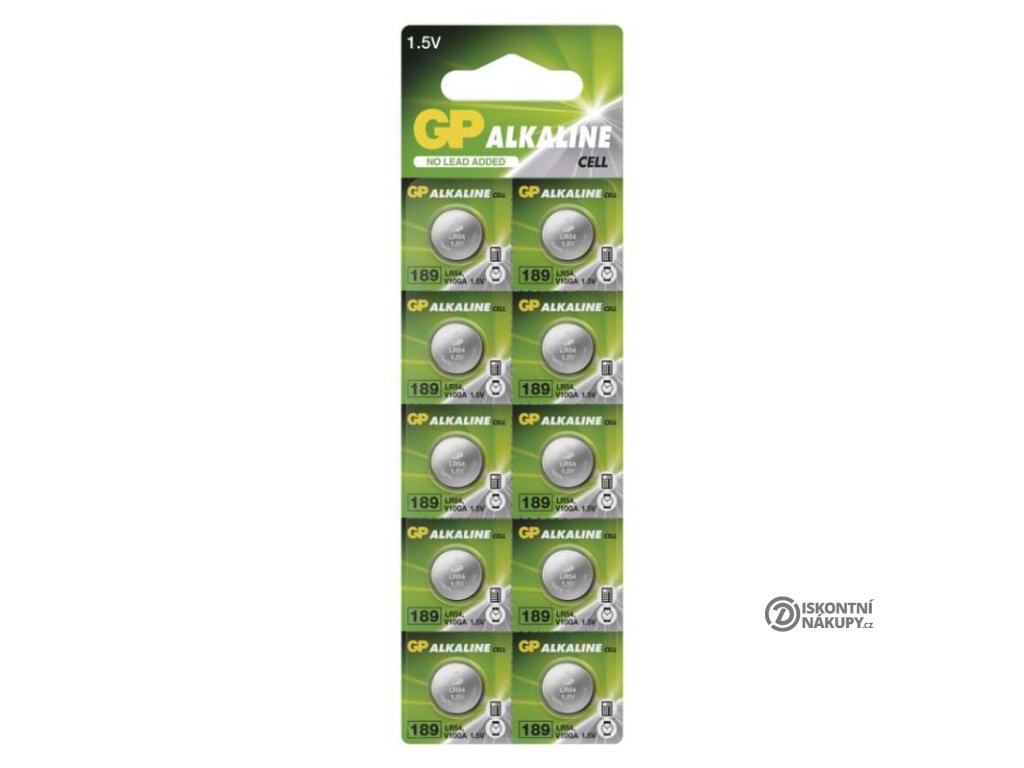 chemické složení: alkalické|hmotnost: 1,0 g|kapacita: 44 mAh (při zátěži 3,9 kOhm)|kategorie/řada: Alkaline cell|max. skladovatelnost: 3 roky|možnost nabíjení: ne|napětí: 1,5 V|počet nabíjecích cyklů: nenabíjecí|prodejní obal: 10 ks, blistr|provozní teplota: 0 °C až +45 °C|rozměr: 11,6 × 3,05 mm|typ: GP 189F (AG10, LR54, LR1130, V10GA)|velikost baterie: neuvádí se|značka: GPPopis produktu