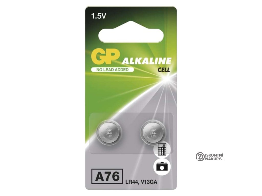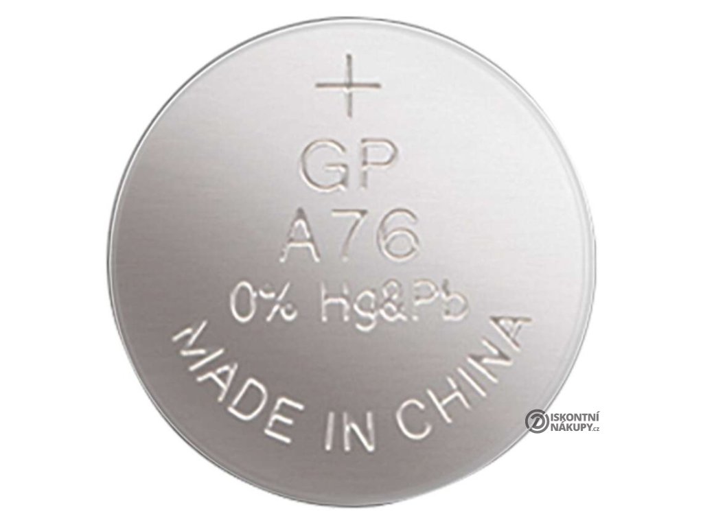 chemické složení: alkalické|hmotnost: 1,7 g|kapacita: 110 mAh (při zátěži 1,6 kOhm)|kategorie/řada: Alkaline cell|max. skladovatelnost: 3 roky|možnost nabíjení: ne|napětí: 1,5 V|počet nabíjecích cyklů: nenabíjecí|prodejní obal: 2 ks, blistr|provozní teplota: 0 °C až +45 °C|rozměr: 11,6 × 5,4 mm|typ: GP A76F (AG13, LR44, LR1154, V13GA, PX76A)|velikost baterie: neuvádí se|značka: GPDoplňkové parametry