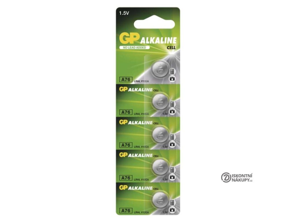 chemické složení: alkalické|hmotnost: 1,7 g|kapacita: 110 mAh (při zátěži 1,6 kOhm)|kategorie/řada: Alkaline cell|max. skladovatelnost: 3 roky|možnost nabíjení: ne|napětí: 1,5 V|počet nabíjecích cyklů: nenabíjecí|prodejní obal: 5 ks, blistr|provozní teplota: 0 °C až +45 °C|rozměr: 11,6 × 5,4 mm|typ: GP A76F (AG13, LR44, LR1154, V13GA, PX76A)|velikost baterie: neuvádí se|značka: GPPopis produktu