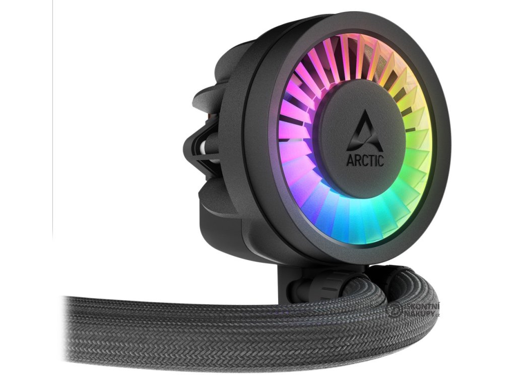 Vodní chladič určený pro chlazení procesoru. Vyznačuje se vysokou kvalitou, výkonem a spolehlivostí. Vybaven je dvěma 120mm ventilátory ARCTIC P12 Pro A-RGB, které disponují kvalitními FDB ložisky zajišťujícími dlouhotrvající bezproblémový chod. Odolné opletené hadice jsou dlouhé 450 mm a díky dostatečně širokému průměru zaručují plynulý průtok chladicí kapaliny.