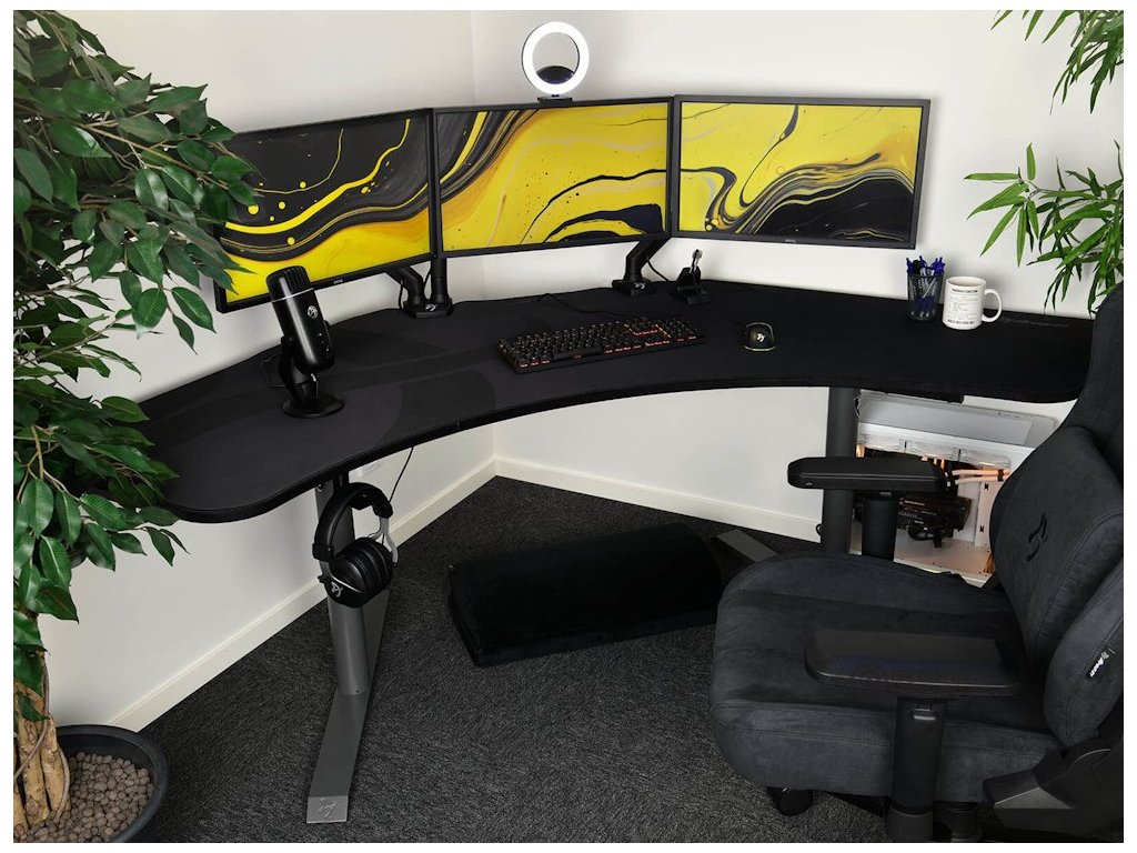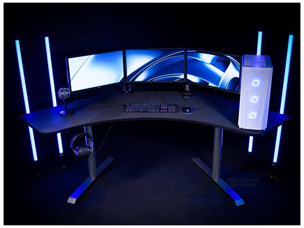 Arozzi Arena Angelo Gun MetalRohový herní stůl Arozzi Arena Angela maximalizuje komfort při hraní. Umožnuje umístění až tří velkých monitorů a jeho šířka nabízí dostatek prostoru pro myš, klávesnici a další příslušenství. Rám stolu je vyroben z kvalitního pevného materiálu a výška desky je nastavitelná. Na spodní straně desky je umístěn systém pro správu kabelů. Povrch pracovní plochy s protiskluzovou úpravou je odnímatelný, vyrobený z mikrovlákna, voděodolný a lze jej prát v pračce.