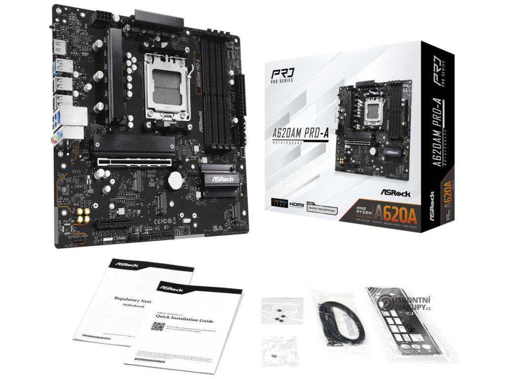 ASRock A620AM Pro-A / AMD A620A / AM5 / 4x DDR5 DIMM / 3x M.2 / HDMI / USB-C / mATX 90-MXBSX0-A0UAYZ
