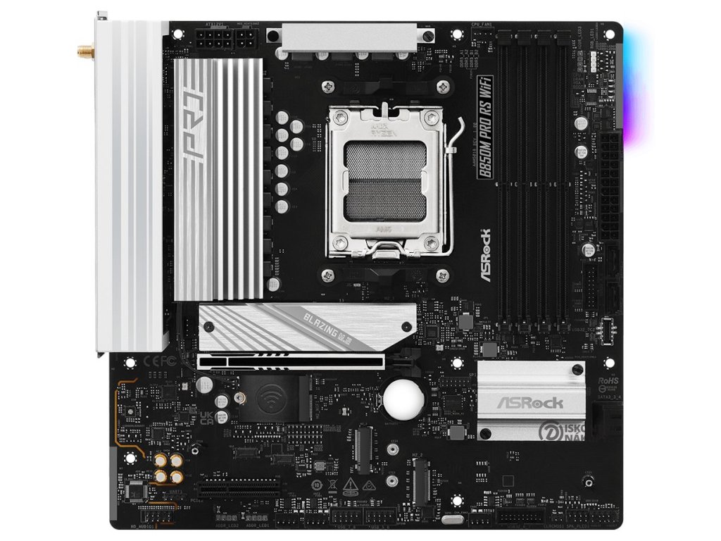 ASRock B850M Pro RS WiFi / AMD B850 / AM5 / 4x DDR5 DIMM / 3x M.2 / HDMI / DP / USB-C / WiFi / mATX 90-MXBR70-A0UAYZ