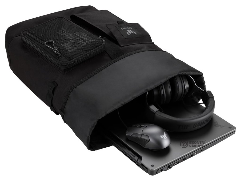ASUS TUF Gaming VP4700 BackpackStylový batoh pro notebook do úhlopříčky 17,3" vyrobený z voděodolné tkaniny určený především pro hráče. Dostatečně velký prostor pro veškeré herní vybavení je navíc možné díky rolovacímu uzavírání zvětšit až do výšky 61 cm. Telefon a další drobné příslušenství lze uschovat do přídavných kapes na čelní straně batohu. Polstrovaný interiér zajišťuje dostatečnou ochranu notebooku, jakož i příslušenství a dokumentů. Vnější polstrování kryté prodyšnou síťovinou usnadňuje dlouhodobé nošení.