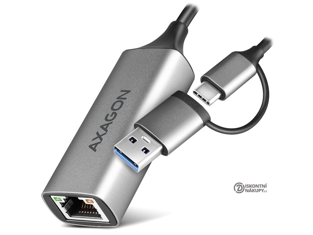 AXAGON adaptér USB-A + USB-C na GLAN(RJ-45) / ADE-TXCA / USB 3.2 Gen1 / 15cm / kovové tělo ADE-TXCA