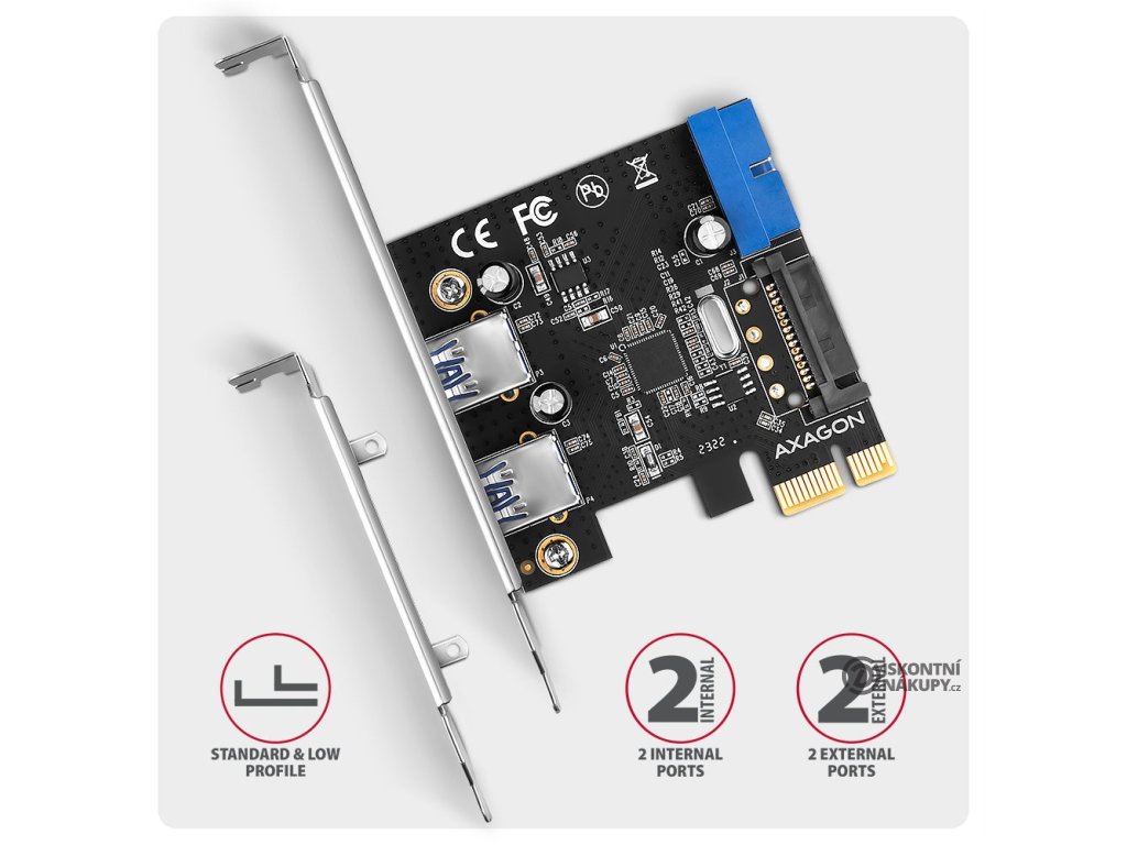 AXAGON řadič do PCIe pro 2x USB Typ-A / 2x USB interní / USB 5Gbps / PCEU-232RS / SP & LP / čip Renesas PCEU-232RS