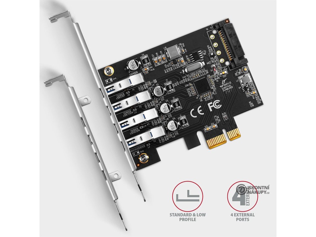 AXAGON řadič do PCIe pro 4x USB 3.2 Gen1 / PCEU-43RS / SP & LP PCEU-43RS