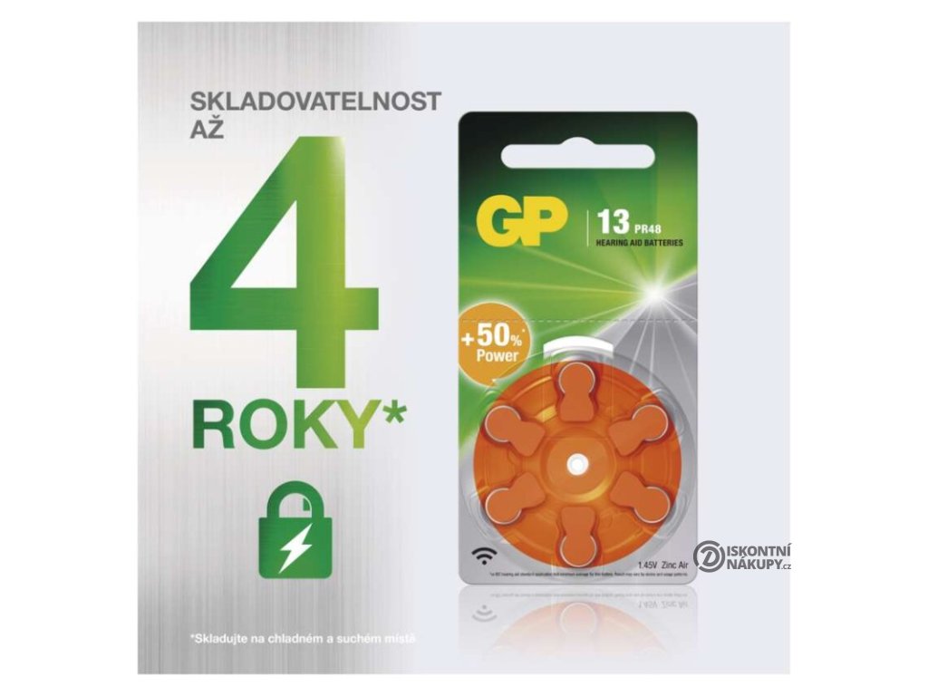 chemické složení: zinkovzdušné|hmotnost: 0,8 g|kapacita: 290 mAh (při zátěži 625 Ohm)|kategorie/řada: Hearing Aid|max. skladovatelnost: 3 roky|možnost nabíjení: ne|napětí: 1,45 V|počet nabíjecích cyklů: nenabíjecí|prodejní obal: 6 ks, blistr|provozní teplota: -10 °C až +50 °C|rozměr: 7,9 × 5,4 mm|typ: GP ZA13 (7000ZD, PR48)|velikost baterie: neuvádí se|značka: GPPopis produktu