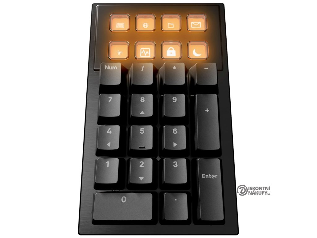 8 programovatelných kláves s displejem umožňuje zobrazení vlastních obrázků nebo animací. ARGB podsvícení s difuzéry na každém spínači zajišťuje rovnoměrné osvětlení jednotlivých kláves s možností nastavení atmosférických efektů.