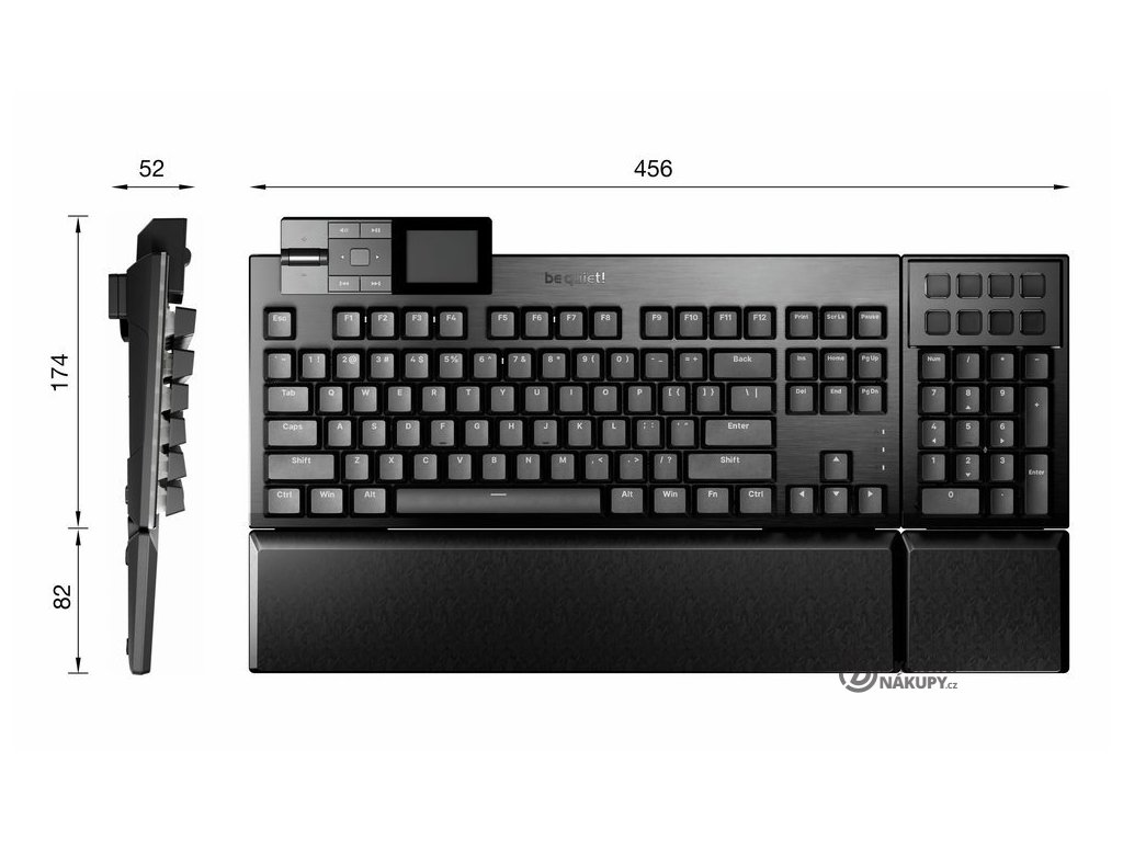 Rozměry: 456 × 256 × 52 mm (456 × 174 × 52 mm bez opěrky dlaně)