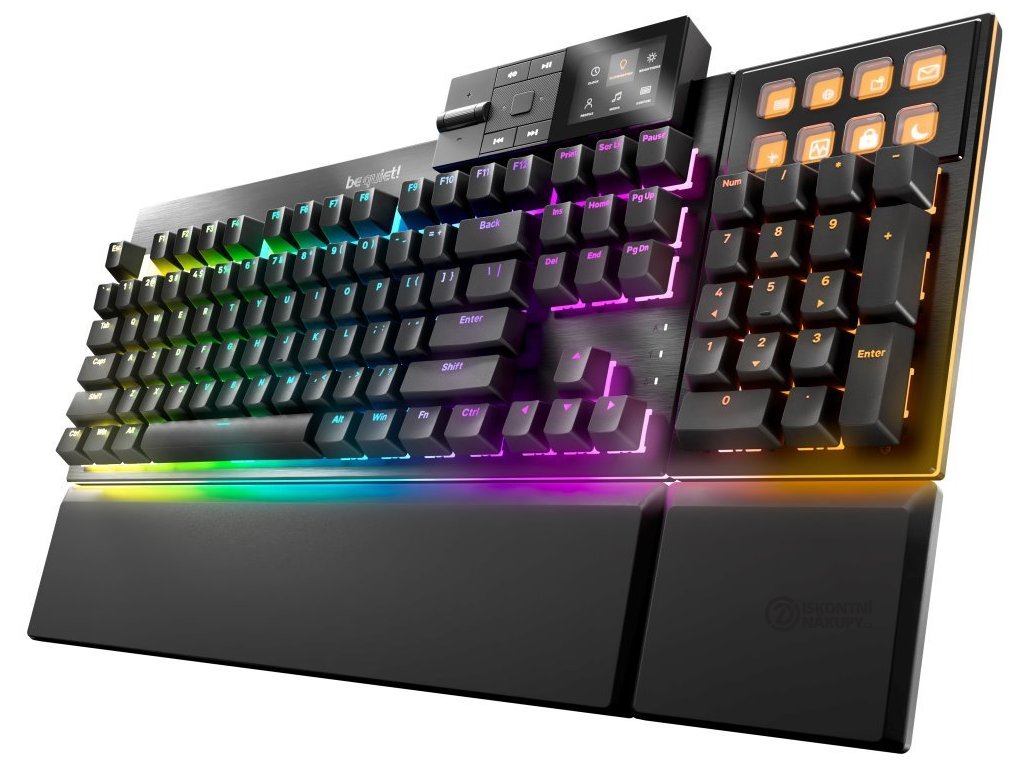 Mechanická klávesnice Be quiet! DARK MOUNT Silent Linear je osazena programovatelnými klávesami a barevným displejem, takže snadno přiřadíte makra, animované GIFy a jednoduché ikony podpoří celkovou přehlednost. Klávesy s taktilními mechanickými spínači Silent Switches prémiové kvality dávají jasnou hmatovou odezvu při každém stisku a podpoří tiché a bezhlučné psaní i hraní her.. Konstrukce se vyznačuje kombinací pěny a silikonu, díky čemuž dosahuje nízké hlučnosti při každém stisku.