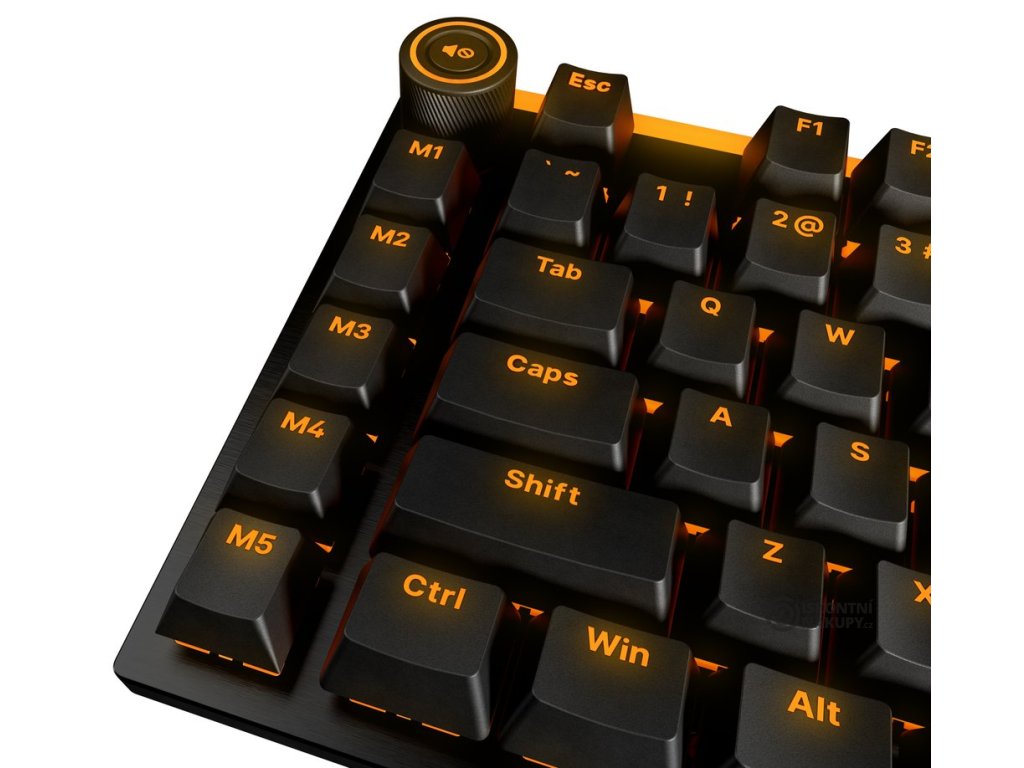 Součástí klávesnice je numerický blok pro snadné zadávání číselných znaků i praktické hliníkové 3D kolečko pro ovládání hudby, videí nebo makrokláves. V základním nastavení umožňuje upravit hlasitost nebo vypnout zvuk. Celkem 5 mechanických makrokláves můžete naprogramovat pro další média, nebo jim přiřadit specifickou funkci prodanou hru.