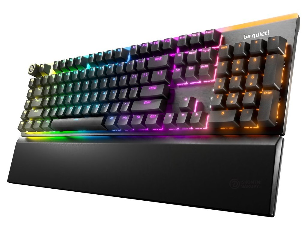 Klávesnice s tichými lineárními mechanickými spínači be quiet! s továrním mazáním a podporou výměny za provozu. Nabízí třívrstvé zvukové tlumení, hliníkové tělo, dvojité PBT klávesy s prosvítajícími popisy a podsvícení každé klávesy pomocí ARGB difuzorů.