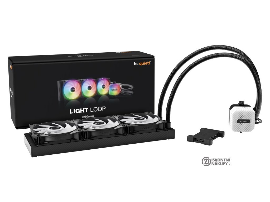 Be quiet! Light Loop AIO ARGB 360 mmVodní chladič určený pro chlazení široké škály procesorů. Vyznačuje se vysokou kvalitou, výkonem a spolehlivostí. Vybaven je třemi 120 mm velkými ventilátory s ARGB podsvícením, které disponují kvalitními Rifle ložisky zajišťujícími dlouhotrvající bezproblémový chod. Odolné opletené hadice jsou dlouhé 400 mm a díky dostatečně širokému průměru zaručují plynulý průtok chladicí kapaliny. ARGB osvětlení na chladicím bloku dodává chladiči nezaměnitelný vzhled. Snadno přístupný plnicí otvor a přiložená lahvička chladicí kapaliny pak zaručují dlouhou životnost.