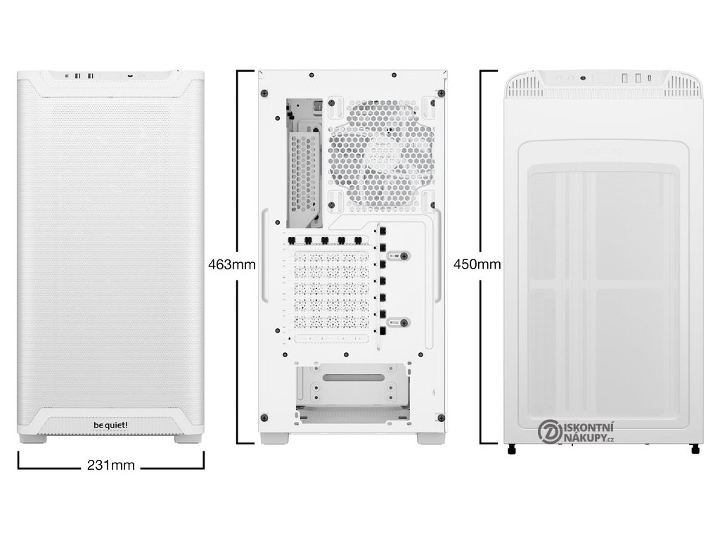 Be quiet! PURE BASE 501 LXVšestranná počítačová skříň formátu Middle Tower s průhlednou bočnicí a perforovaným předním panelem nabízí kompaktní rozměry a vysoký průtok vzduchu. Tři ventilátory Light Wings LX 120 PWM přivádějí studený vzduch zepředu, zatímco 140mm zadní ventilátor horký vzduch vyfukuje. Navíc disponují ARGB podsvícením pro nezaměnitelné světelné efekty. Pro podporu celého ARGB ekosystému je za držákem základní desky nainstalován hub pro 6 ARGB zařízení a PWM ventilátory. Na horním panelu se nachází dva USB 3.0 porty, jeden port USB-C a kombinovaný port sluchátek a mikrofonu. Ve skříni je dostatek prostoru pro chladič CPU do výšky až 178 mm a grafickou kartu o délce až 368 mm. Důmyslné řešení umožňuje pohodlné umístění až 360 mm dlouhého výměníku vodního chlazení na přední straně. Potěší také pohodlná správa kabelů či PCIe slot, který lze otočit o 90° pro svislou montáž širokých grafických karet. Skříň je dodávána bez zdroje.
