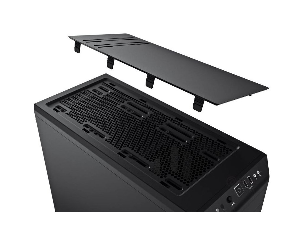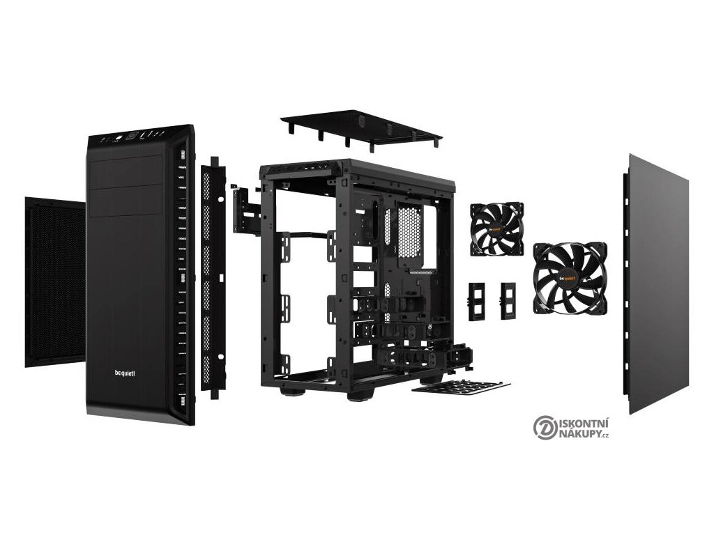 Be quiet! Pure Base 600Skříň, která přináší výbornou funkčnost za příznivou cenu. Tato skříň je díky speciálnímu designu vhodná pro vodní chladič a to až do velikosti 360 mm. Odnímatelný vrchní díl ventilátoru lze úplně uzavřít v případě, že požadujete co nejnižší hluk, případně pro co nejlepší výkon chladiče jej ponechat naplno otevřené. Skříň má předinstalovány dva ultra tiché ventilátory Pure Wings 2. Samozřejmostí je kompletní odhlučnění na horní a bočních stranách. Skříň disponuje i pokročilou kabelovou správou.