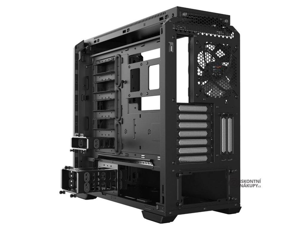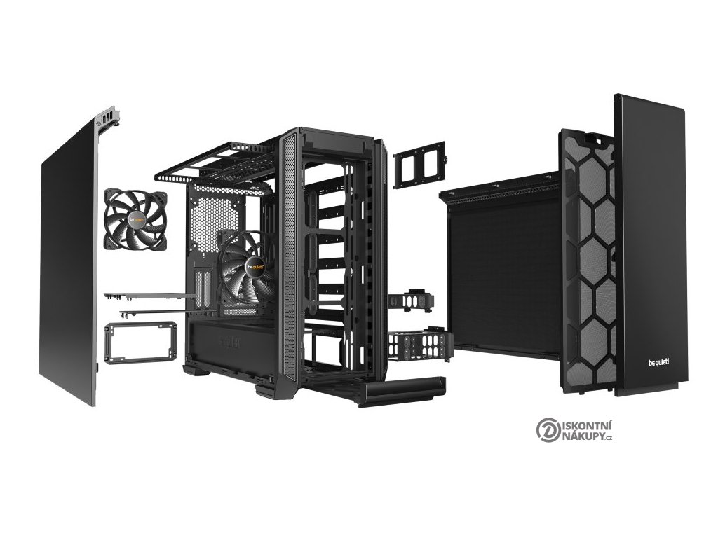Be quiet! SILENT BASE 601Kvalitní počítačová skříň formátu Middle Tower, která perfektně kombinuje vysoký stupeň modularity s absolutní tichostí. Vybavena je dvěma prakticky neslyšitelnými ventilátory, které je možné díky 3stupňovému regulátoru přepínat mezi režimy ticha nebo výkonu. Potěší také možnost rozšíření o dalších šest ventilátorů. Na horní straně se nachází dva USB 3.0 porty, jeden USB 2.0 port, sluchátkový výstup a vstup pro mikrofon. Podporuje montáž základních desek E-ATX, ATX, M-ATX a MINI-ITX. Pro disky pak slouží tři 3,5" pozice nebo až šest 2,5" pozic. Skříň je dodávána bez zdroje.
