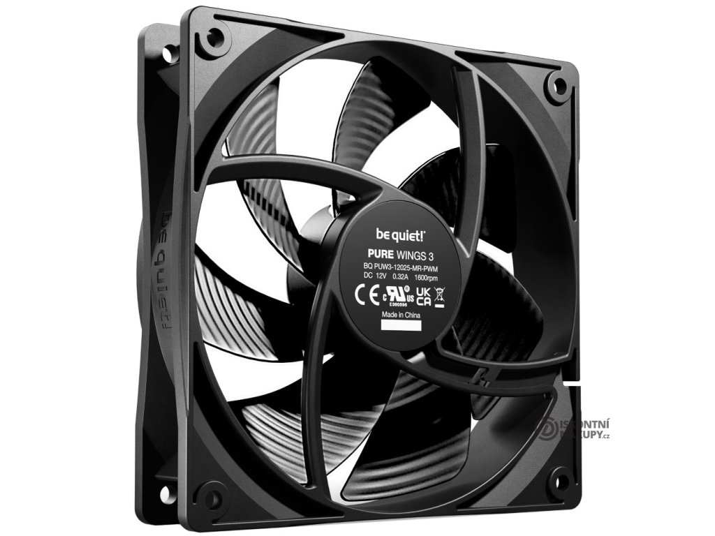 Be quiet! Pure Wings 3 120 mm PWMExtra tichý ventilátor s PWM regulací otáček. Lopatky s optimalizovaným povrchem zajišťují téměř neslyšitelný chod a perfektní průtok vzduchu.