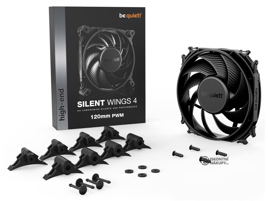 Be quiet! Silent Wings 4 PWM 120 mmExtra tichý ventilátor s PWM regulací otáček. Lopatky s optimalizovaným povrchem zajišťují téměř neslyšitelný chod a perfektní průtok vzduchu.