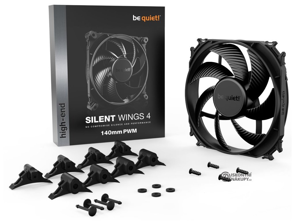 Be quiet! Silent Wings 4 PWM 140 mmExtra tichý ventilátor s PWM regulací otáček. Lopatky s optimalizovaným povrchem zajišťují téměř neslyšitelný chod a perfektní průtok vzduchu.