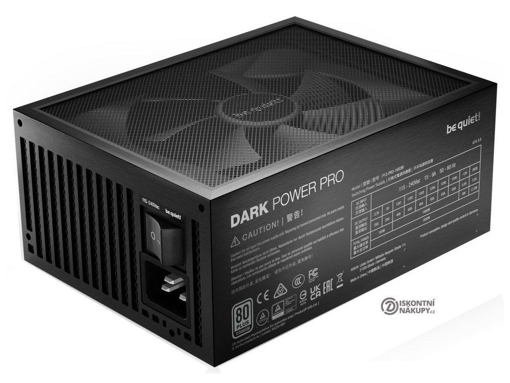 Be quiet! DARK POWER PRO 13 1600 WNapájecí zdroj o výkonu 1600 W je osazen tichým a přitom výkonným 135 mm ventilátorem. Zdroj splňuje certifikaci 80PLUS Titanium a má plně odpojitelné kabely.