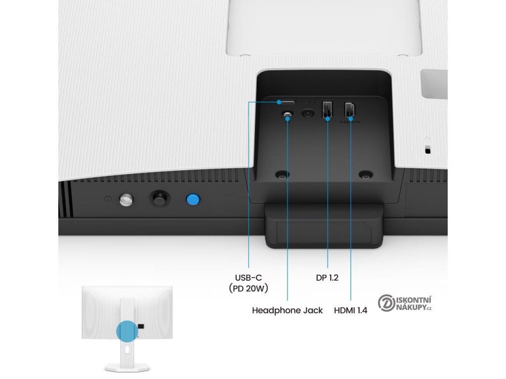 Monitor disponuje vstupy HDMI 1.4, DisplayPort 1.2 a USB-C s podporou DisplayPort Alt Mode. USB-C port umožňuje připojení notebooku jediným kabelem pro přenos obrazu, dat i napájení až 20 W. K dispozici jsou integrované reproduktory 2 × 2 W a výstup na sluchátka. Monitor podporuje HDCP 1.4 a technologii AMD FreeSync.