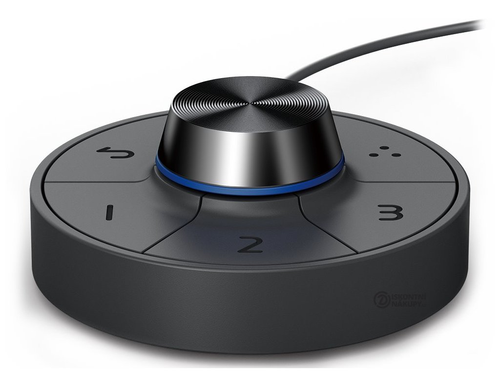 Součástí balení je dálkový ovladač Hotkey Puck G2, který slouží k rychlému přepínání nastavitelných módů obrazu bez nutnosti vstupu do menu. Kromě několika funkčních tlačítek obsahuje tento ovladač také otočné kolečko, které umožňuje rychlou úpravu jasu, kontrastu nebo hlasitosti.