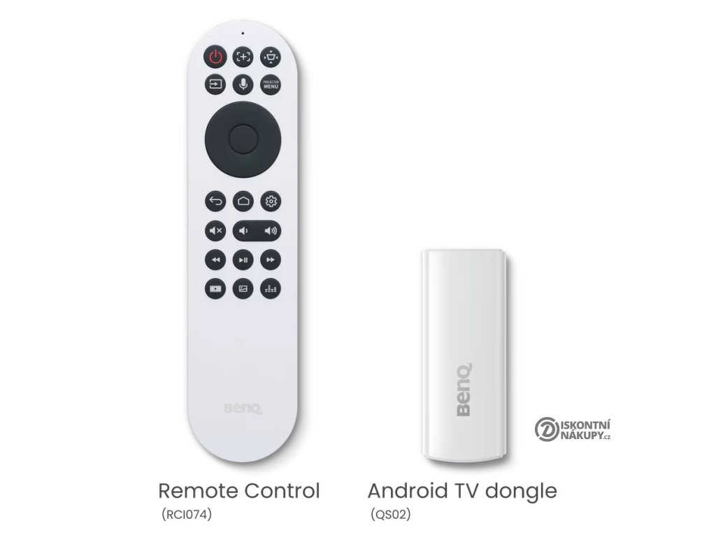 Součástí balení je dálkový ovladač (včetně baterií) a modul QS02 s Android TV.