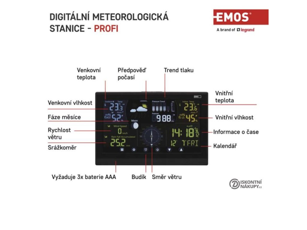 | napájení stanice: | 3× 1,5 V AAA (nejsou součástí balení) |