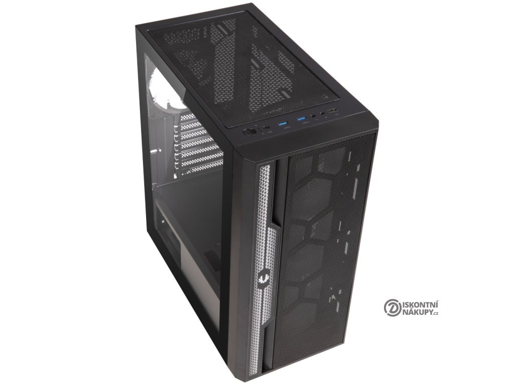 BitFenix ApolloModerní počítačová skříň s průhlednou bočnicí z tvrzeného skla. Formát Middle Tower nabízí dostatek prostoru pro uložení až čtyř disků. Na horním panelu se nachází dva USB 3.0 porty, jeden USB 2.0 port, sluchátkový výstup a audio vstup pro mikrofon. Skříň je vybavena čtyřmi 120mm ventilátory s ARGB podsvícením. Ve skříni je dostatek prostoru pro chladič CPU do výšky až 160 mm a grafickou kartu o délce až 345 mm. Skříň je dodávána bez zdroje. Součástí je také magnetický prachový filtr.