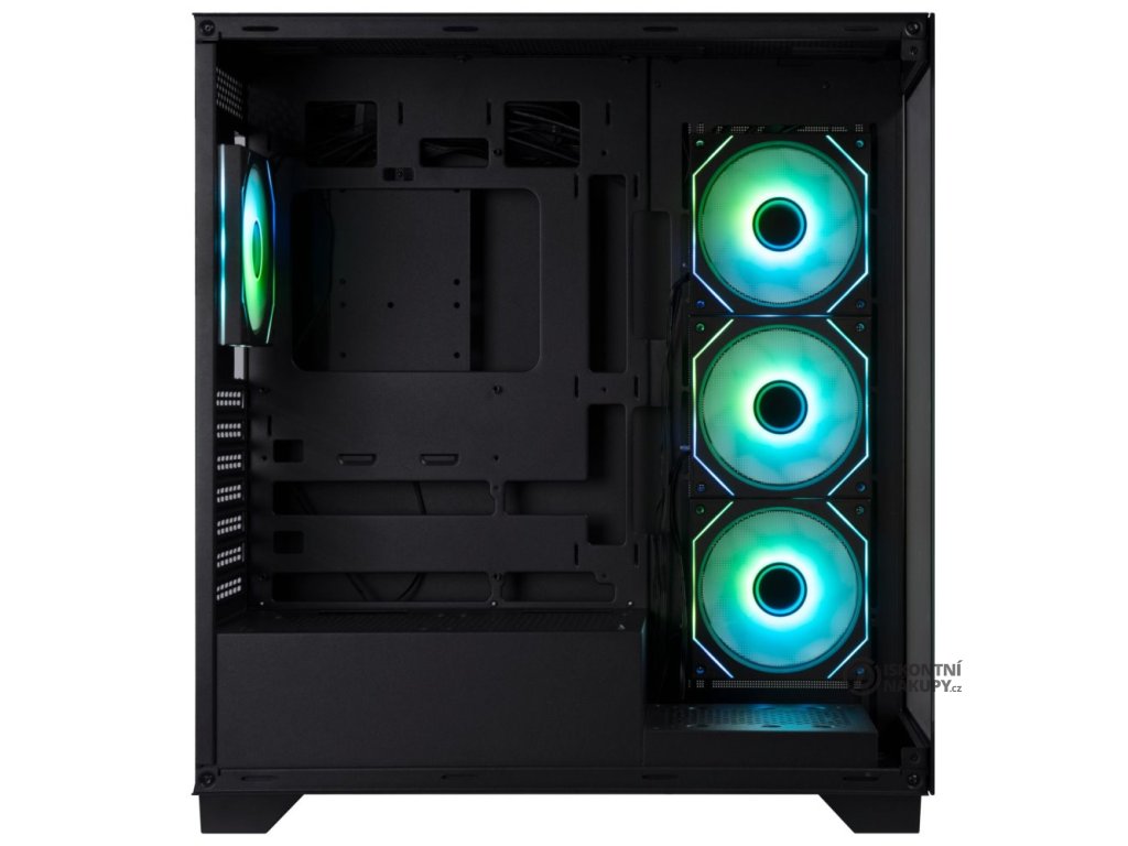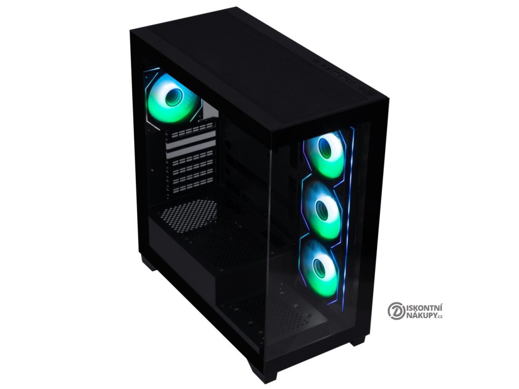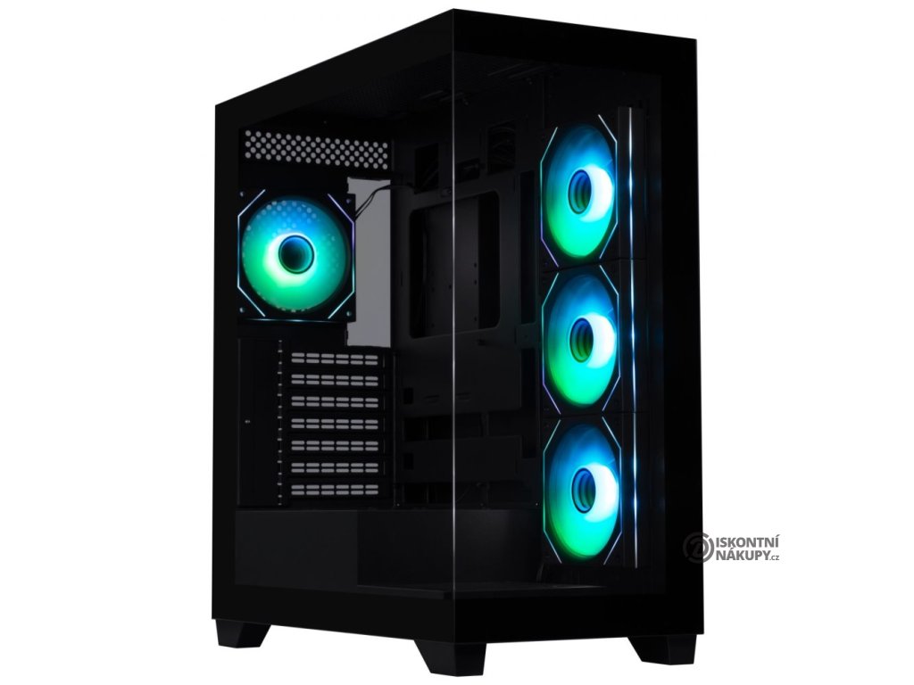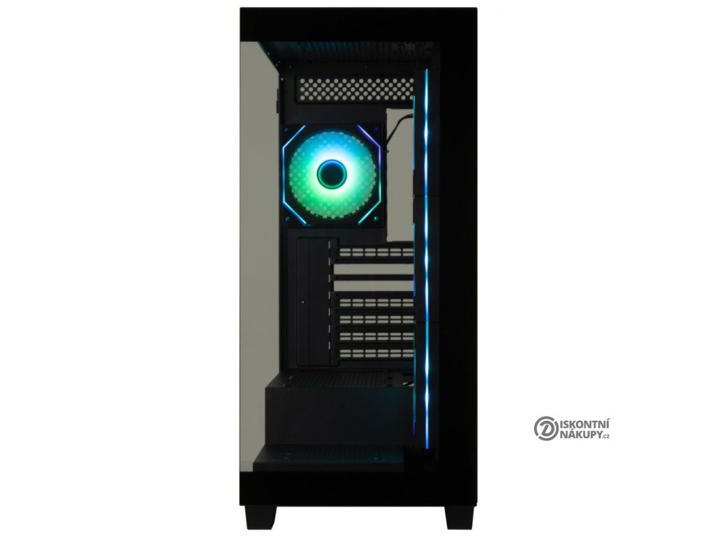 Herní počítačová skříň nabízí stylovou prosklenou bočnici i přední panel a prvotřídní kovovou konstrukci. Skříň je osazena čtyřmi ventilátory o velikosti 120 mm s ARGB podsvícením. Potěší také možnost rozšíření o další 3 ventilátory. Samozřejmostí jsou také prachové filtry. Důmyslné řešení umožňuje pohodlné umístění až 360 mm dlouhého výměníku vodního chlazení na horní nebo boční straně. Ve skříni je dostatek prostoru pro chladič CPU do výšky až 170 mm a grafickou kartu o délce až 434 mm. Na horním panelu se nachází dva porty USB 3.0, jeden port USB-C, sluchátkový výstup a vstup pro mikrofon. Skříň je dodávána bez zdroje.