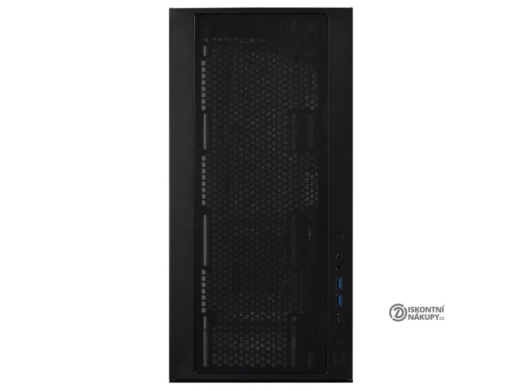 Konektory na horním panelu: 2× USB 3.0, 1× USB-C, 1× sluchátkový výstup, 1× vstup pro mikrofon