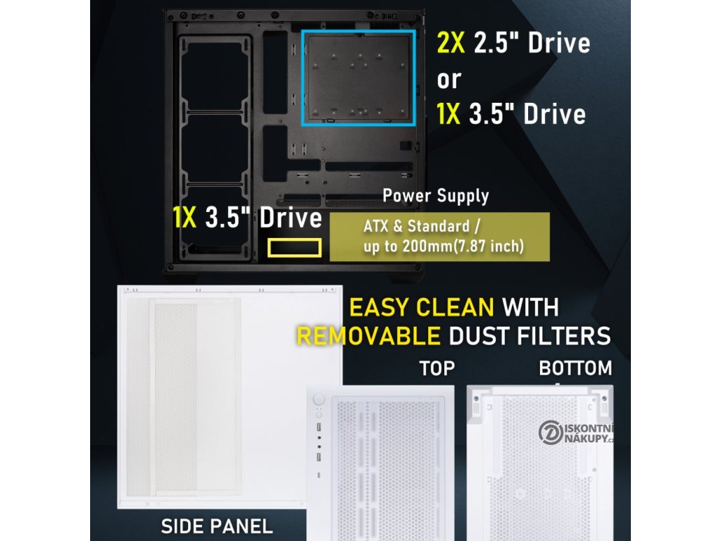 Interní pozice: 2× 2,5" + 1× 3,5", nebo 2× 3,5"