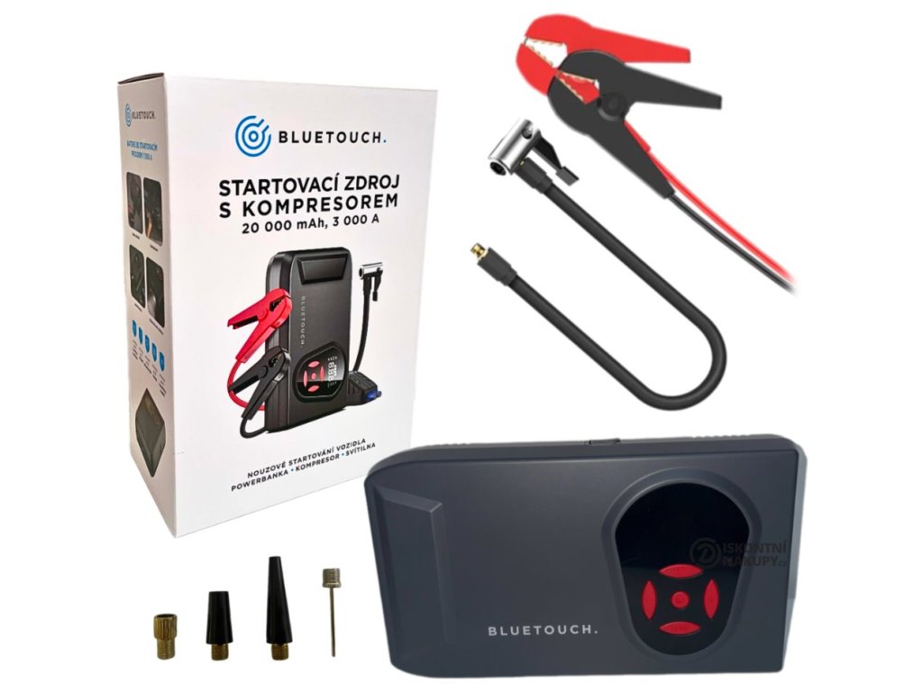 BLUETOUCH startovací zdroj s kompresorem 20.000 mAh a výstupním proudem 3000 A U1146