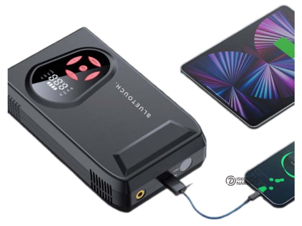 BLUETOUCH U1146Multifunkční powerbanka o kapacitě 20 000 mAh se startovacími svorkami, kompresorem a praktickou LED svítilnou. Tento všestranný pomocník vás nikdy nezklame – nejenže snadno nastartuje automobil, motocykl nebo čtyřkolku s vybitou baterií, ale také dofoukne kolo nebo rychle nabije telefon a další elektronická zařízení. Zařízení je vybaveno pokročilými bezpečnostními prvky, jako je ochrana proti přehřátí, nadměrnému proudu a nízkým nebo vysokým teplotám. S tímto multifunkčním startovacím zdrojem budete vždy připraveni na nečekané situace a zažijete bezstarostné cestování. Součástí balení je také praktické pouzdro, které zajišťuje snadné uskladnění startovacího zdroje a veškerého příslušenství, jako jsou kabely ke kompresoru, startovací svorky, USB-C kabel a sada koncovek ke kompresoru.
