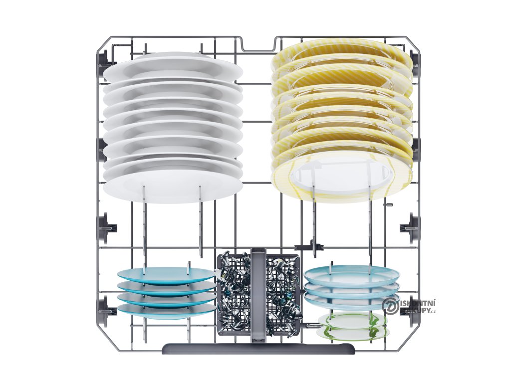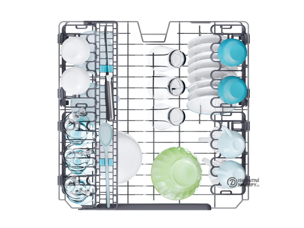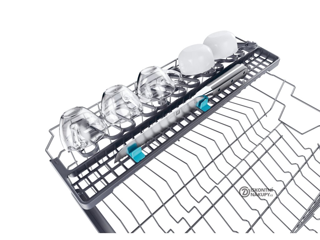 Nové příslušenství připevněné na horním koši je navrženo tak, aby dokonale drželo nůž na chleba, naběračky a další dlouhé předměty tím nejchytřejším možným způsobem. Rozšířený prostor na nože dokonale vyřeší problém s mytím dlouhých kuchyňských náčiní.