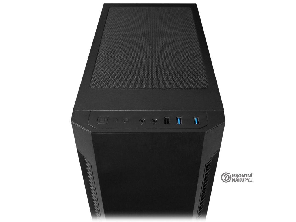 Konektory na horním panelu: 2x USB 3.0, 1x USB 2.0, 1x sluchátkový výstup, 1x vstup pro mikrofon