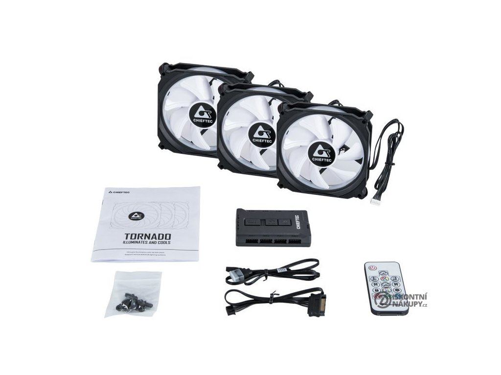 CHIEFTEC sada ventilátorů Tornado / 3x 120mm fan / RGB LED / RGB ovladač / Dálkové ovládání / ultratichý 16 dBa CF-3012-RGB