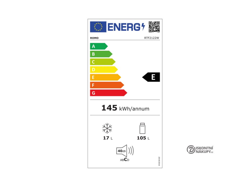 - Energetická třída E ● Roční spotřeba energie: 145 kWh