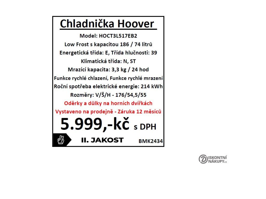 Chladnička s mrazničkou Hoover HOCT3L517EB2 ..Vystaveno na prodejně ..Oděrky a důlky na horních dvířkách ..Záruka 12 měsíců