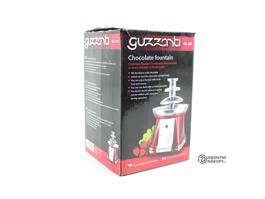 Čokoládová fontána Guzzanti GZ 250 dodá každé párty a oslavě narozenin jedinečnou atmosféru a okouzlí všechny přítomné. Každý si v ní může namáčet své oblíbené ovoce, sušenky, vafle a jiné sladkosti. Pro fondue je vhodná hořká, mléčná i bílá čokoláda. Fontána nemá čerpadlo, takže lze čokoládu doplňovat během činnosti. Její 3 úrovně zajišťují speciální efekt fontány. Pro skvělý požitek je potřeba fontánu předehřát 15 až 20 minut dopředu.