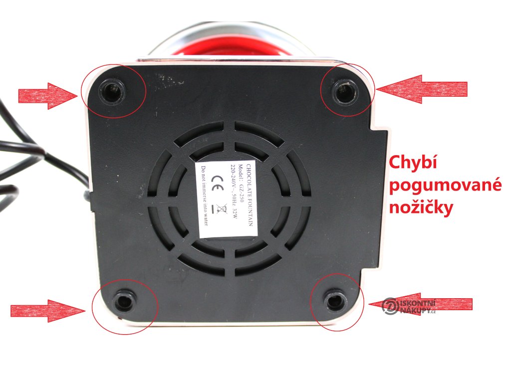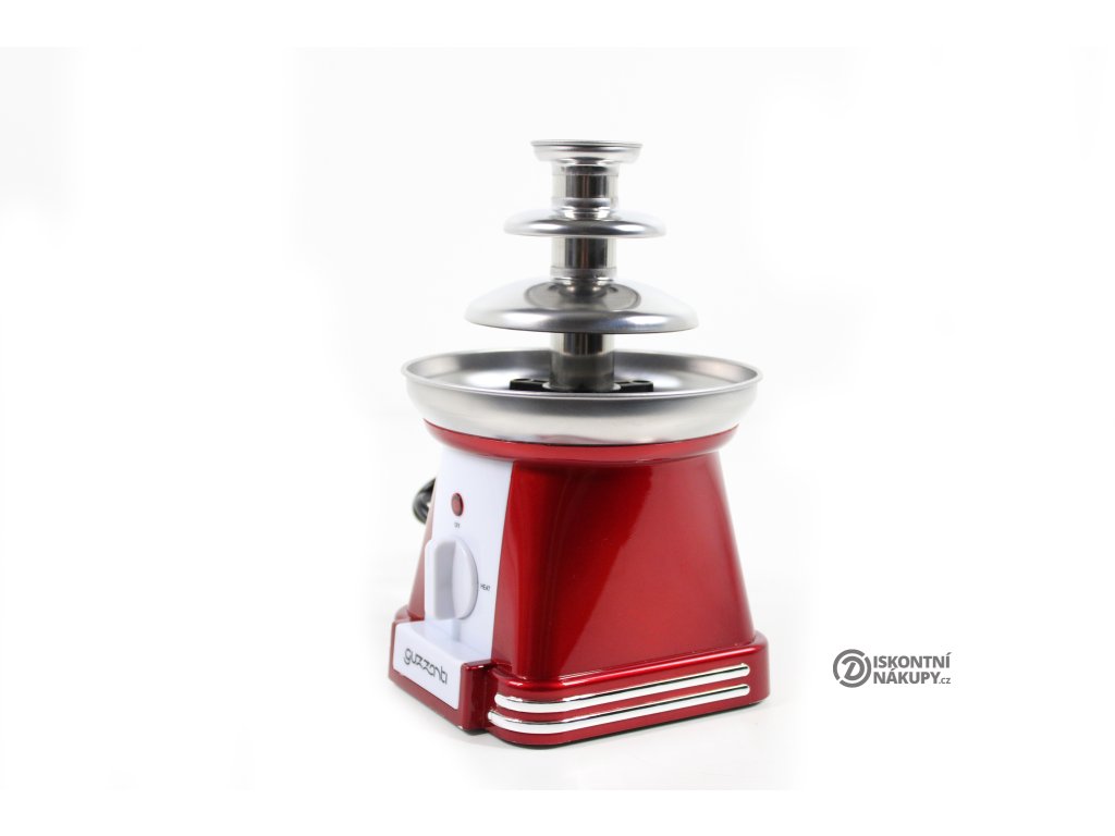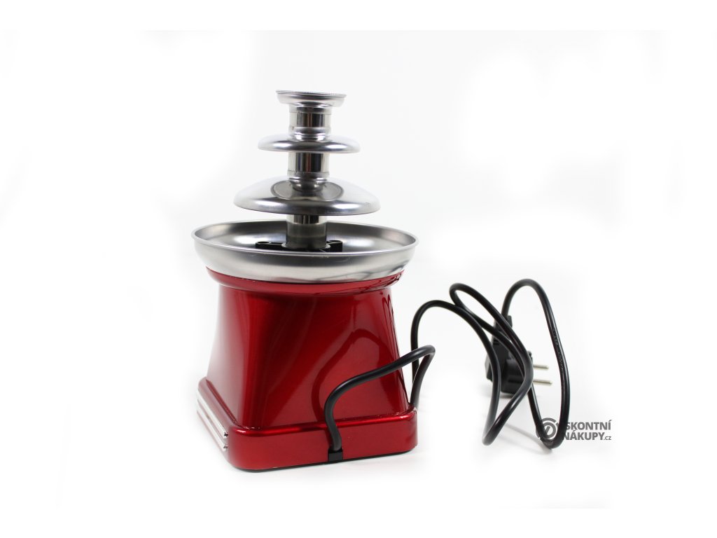 Čokoládová fontána, příkon 32 W, pro 350 g rozehřáté čokolády, předehřátí 15–20 minut před používáním, zpestření dětské oslavy či rodinného večírku, přístroj je bez čerpadla a je možné doplňovat čokoládu za provozu
