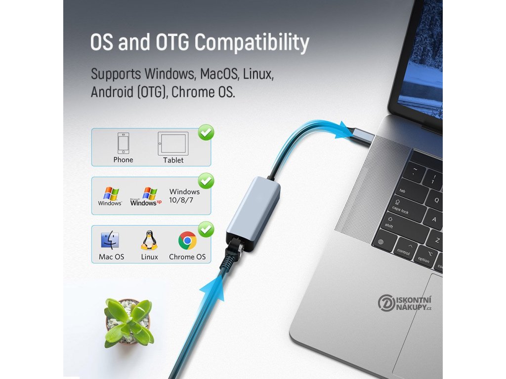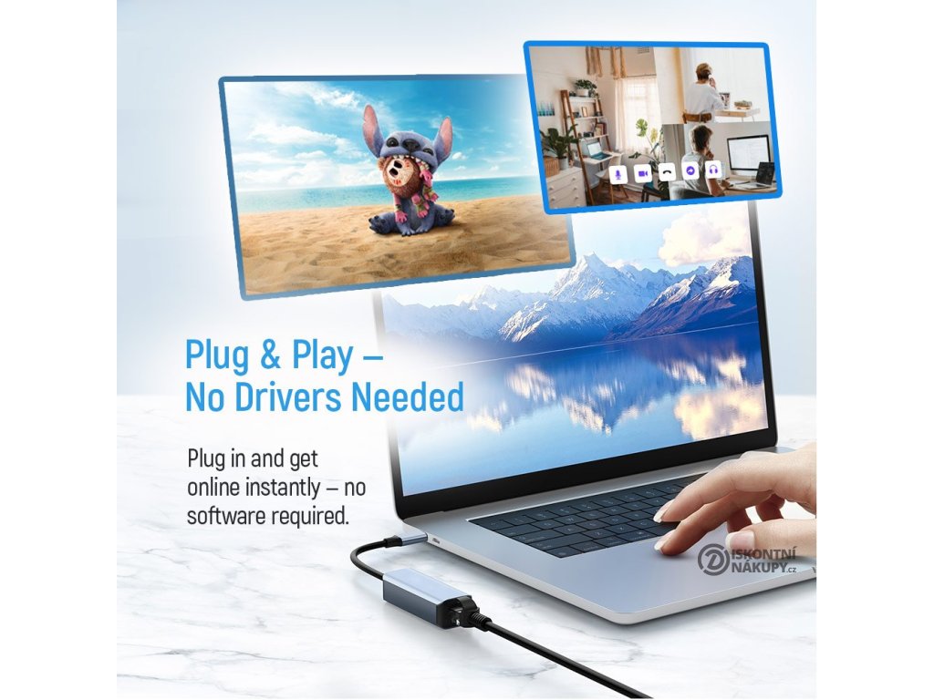 Adaptér je kompatibilní s operačními systémy Windows, MacOS, Linux, Chrome OS a Android s podporou OTG. Díky technologii Plug & Play není potřeba instalovat žádné ovladače.
