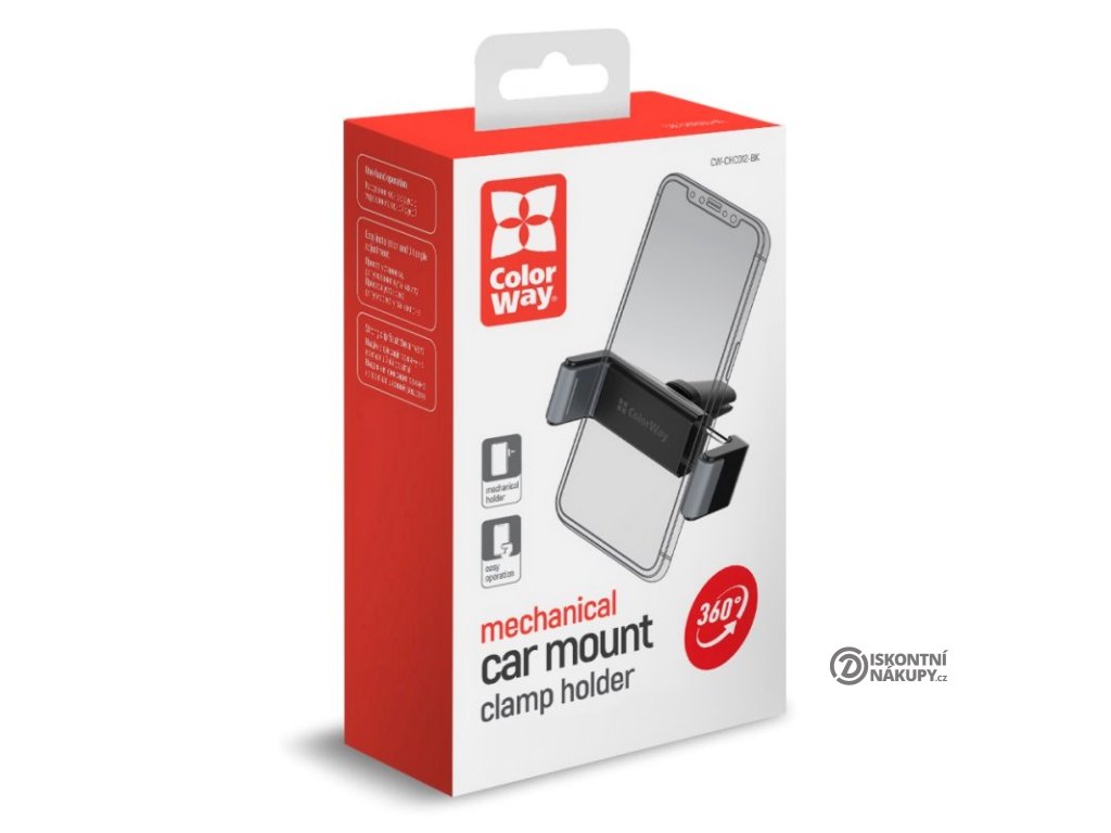 ColorWay CW-CHC012-BKPraktický držák pro mobilní telefon určený k upevnění do ventilační mřížky. Nastavení šířky pomocí posuvného mechanismu zaručuje kompatibilitu s téměř jakýmkoli zařízením. Pro nastavení do požadovaného úhlu disponuje kloubem otočným o 360°. Měkká povrchová úprava eliminuje vznik škrábanců a oděrek na těle smartphonu.