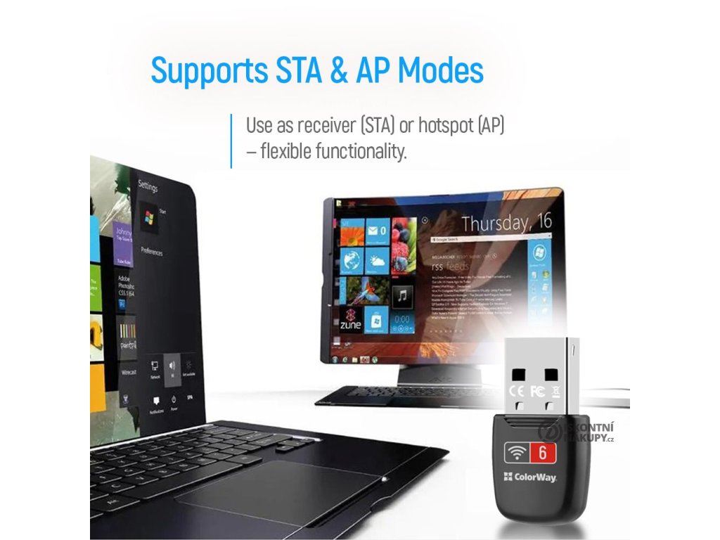 Adaptér dosahuje rychlosti až 286 Mbps na pásmu 2,4 GHz a podporuje jak režim STA (Wi-Fi přijímač), tak AP režim (přístupový bod). Extrémně kompaktní rozměry činí adaptér téměř neviditelným po zapojení do USB portu.