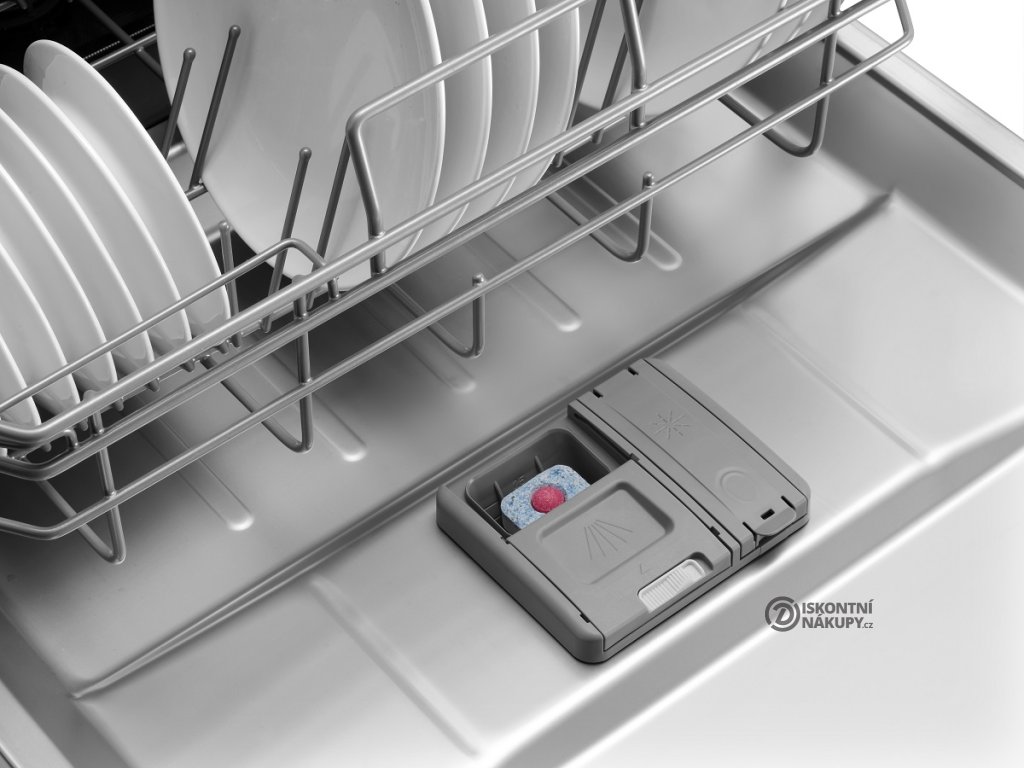 Znáte to, naplnili jste myčku, zapnuli a výsledek po domytí nebyl dokonalý. Zapomněli jste, že před výklopným dávkovačem musíte nechat prostor, aby se tableta dostala do prostoru. S novým dávkovačem typu "SLIDE" už tento problém řešit nemusíte. Při startu mytí se dávkovač otevře "do strany" a po dokončení programu Vás čeká dokonalý výsledek.